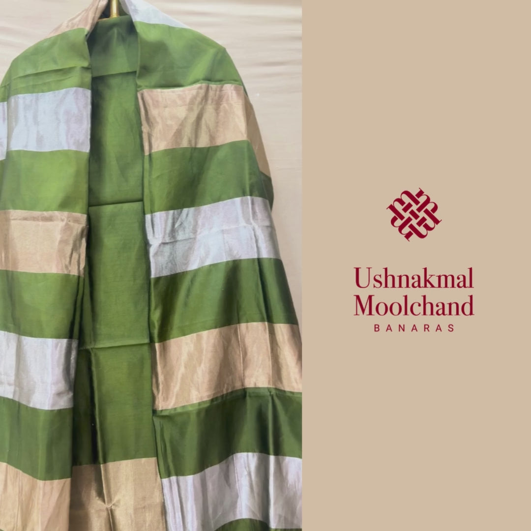 Fabric & Colour: Pure Katan Silk in Olive GreenWeave/Technique: HandloomSet Includes: Kurta, Dupatta & Fabric for Pants/Salwar The Katan Silk Handloom Suit Set is a timeless expression of Banarasi elegance, crafted enti...