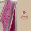 Color: Vibrant Rani base with multicolored detailing in green, yellow, purple, red, orange, and zari highlights Fabric: Pure Katan Silk Weave/Technique: Ghatchola Weaving Design: A modern take on the traditional Ghatchola, this...