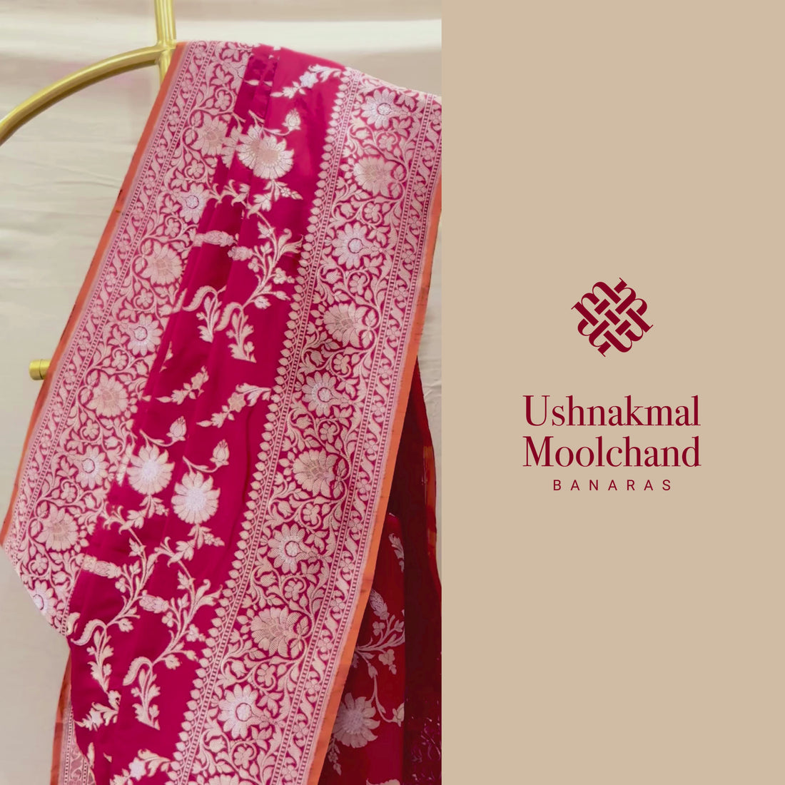 Speciality: The Kadhwa jangla weave makes this saree a true heirloom piece – each motif individually woven into the fabric with precision and time-honored artistry. A perfect blend of grandeur and elegance, this saree is ideal for weddings, festive occasions, and timeless celebrations.
