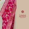 The Katan Silk Handloom Kudrat Jangla Saree is draped in a rich bridal red hue, the saree comes alive with intricate floral vines and meenakari detailing in shades of gold, green, and rose. Each motif is intricately handwoven using the Kadhwa technique. The zari border, intricately patterned with traditional motifs, adds a regal charm to the drape making it an exquisite choice for a wedding trousseau or grand celebration.