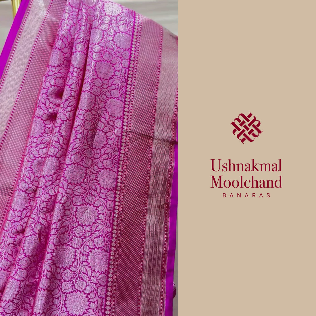 Color: Pink with rich Zari handloom detailing Fabric: Pure Katan Silk Weave/Technique: Kadhwa Weave Design: The Zari Vasket is one of Banaras’ most intricate weaves, created using the Kadhwa technique, where each motif is woven...