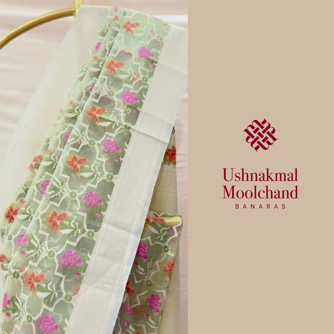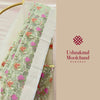 Design: A delicate masterpiece from Banaras, this saree is woven in airy pure Kora silk, known for its gossamer-like finish. The saree features an all-over Meenakari Jaal in vibrant shades of pink, orange, and green, set beautifully against the refreshing pistachio base. Its soft, translucent drape paired with intricate handwoven motifs makes this saree an epitome of refined elegance.
