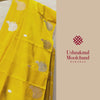 Color: Bright Yellow with zari butis and a Zari Nandi border Fabric: Pure Handloom Satin Silk Weave/Technique: Handloom Weaving Design: From our Garden of Motifs Collection, this saree radiates warmth and celebration in a bril...