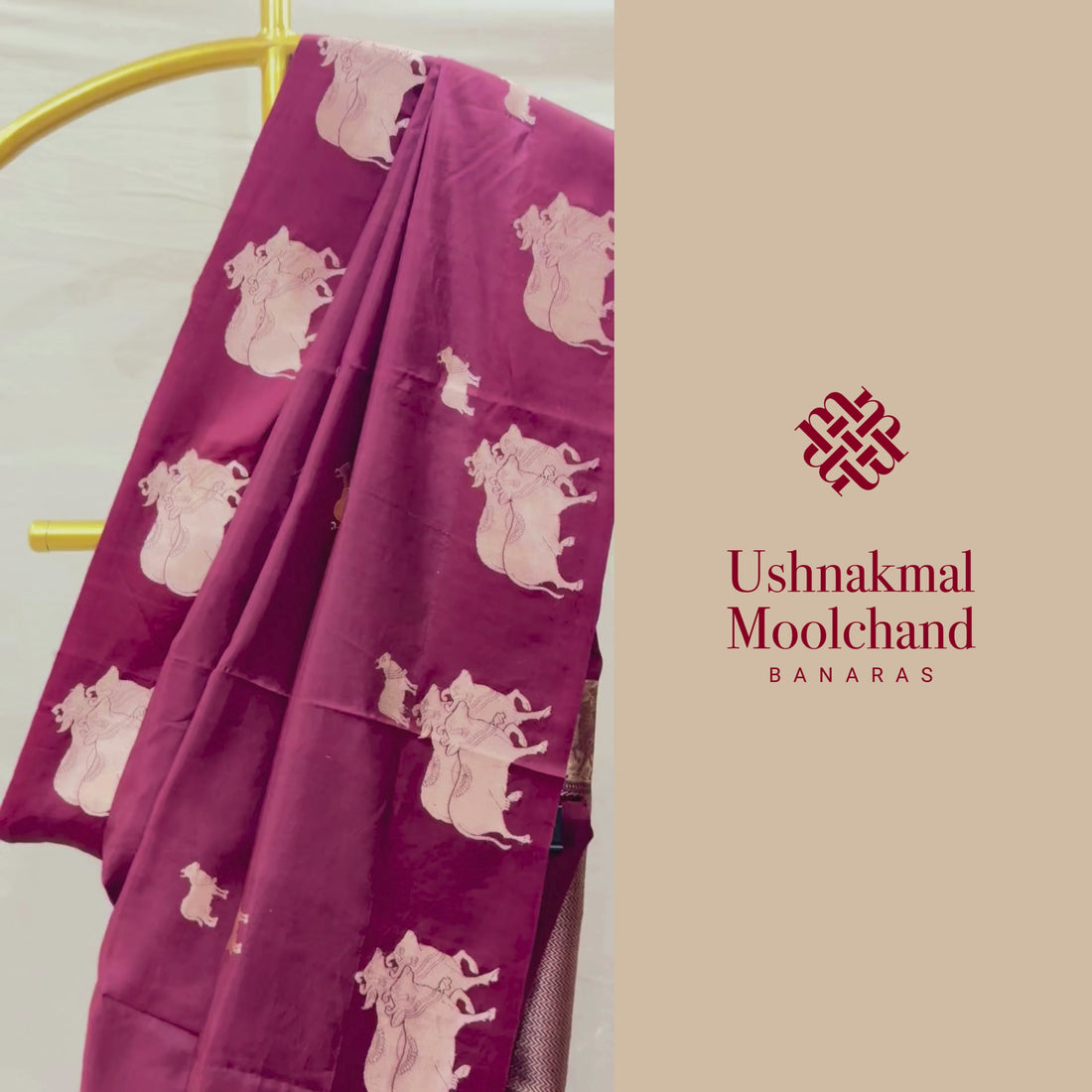 Design: As part of our Garden of Motifs Collection, this saree is a celebration of devotion and tradition. Woven in pure satin silk, it carries a lustrous drape that feels both fluid and regal. The body is adorned with delicate Nandi motifs spread evenly across the surface, while the border is uniquely composed of larger Nandi designs, creating a rare harmony between body and edge. The rich brown hue deepens the aura of the saree, making it timeless and graceful.
