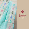 Design: The Tissue Silk Handloom Meenakari Border Saree in turquoise is a true work of Banarasi artistry. The body of the saree is delicately woven with small zari butis that shimmer beautifully against the tissue base, creating a subtle yet striking effect. The highlight of this masterpiece is its exquisitely woven border, crafted with the intricate meenakari technique. The border features Mughal-inspired motifs in shades of turquoise, pink, olive green, and indigo, all brought to life through the finesse of kadhwa weaving.